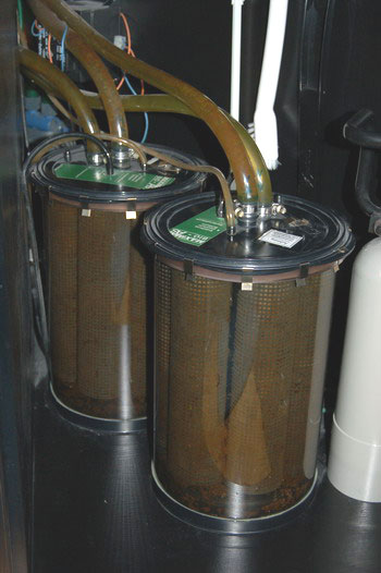 die Filter nach ca. 9 Monaten Laufzeit. Am Boden hat sich ein kleiner