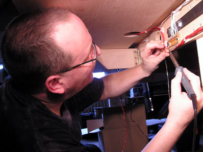All dieses liegt dann hinter dem Brett, welches später einmal die Schaltpulte aufnehmen soll. |