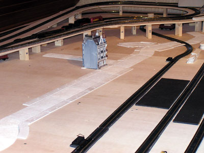 Die Bürgersteige aus Gips müssen angepasst werden. Der nächste Schritt hierfür ist, zu überlegen, wie der Gips geschnitten wird, ohne das er bricht.