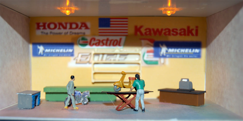 Damit die Innenbeleuchtung gut zur Geltung kommt, hat Ralf für einen Laden zwei gelbe und für den anderen zwei weiße LED Lampen angebracht. |